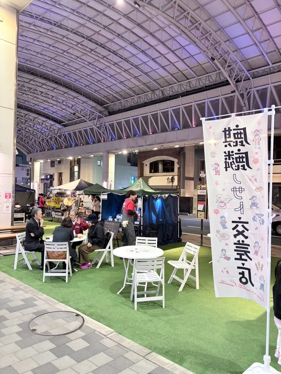 午後から夕方にかけては前日同様の人出が続き、19時半を過ぎても席が埋まるほどの賑わいがありました。