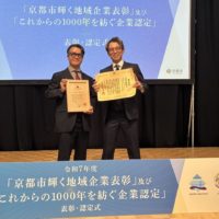 「京都市 輝く地域企業表彰」にてダブル受賞いたしました。