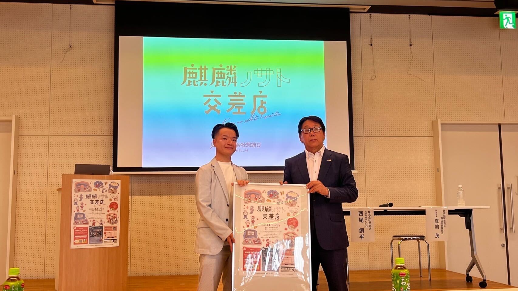 2025年9月22日、鳥取市役所にて、鳥取市中心市街地の新たな賑わいを創出するイベント「麒麟ノサト交差店」に関する記者会見が行われました。